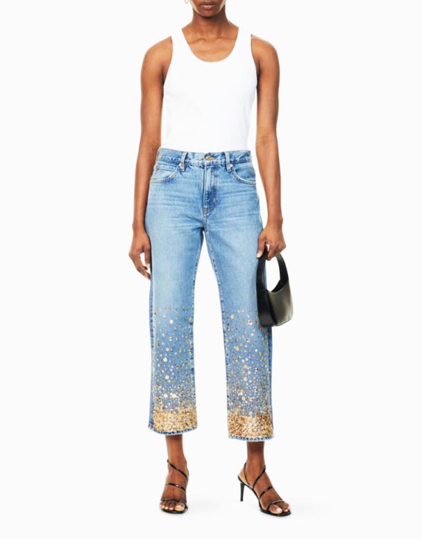 CHW01308 Elastične hlače od tkanine U donjem dijelu, ukrašene šljokicama